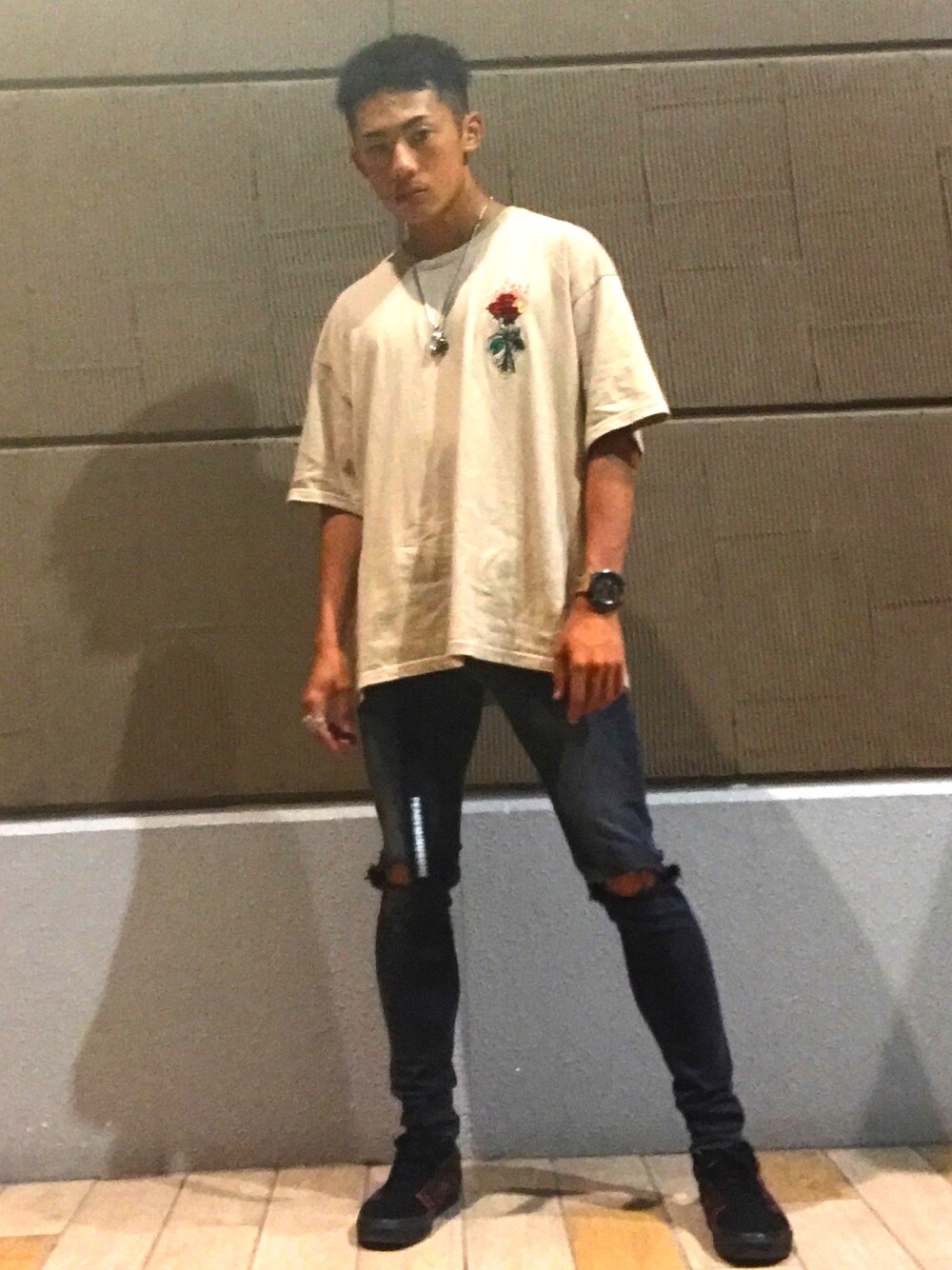 SIBAFUのTシャツ/カットソー「Graffiti Rose Embroidery ルーズシルエットクルーネックTシャツ」を使ったコーディネート