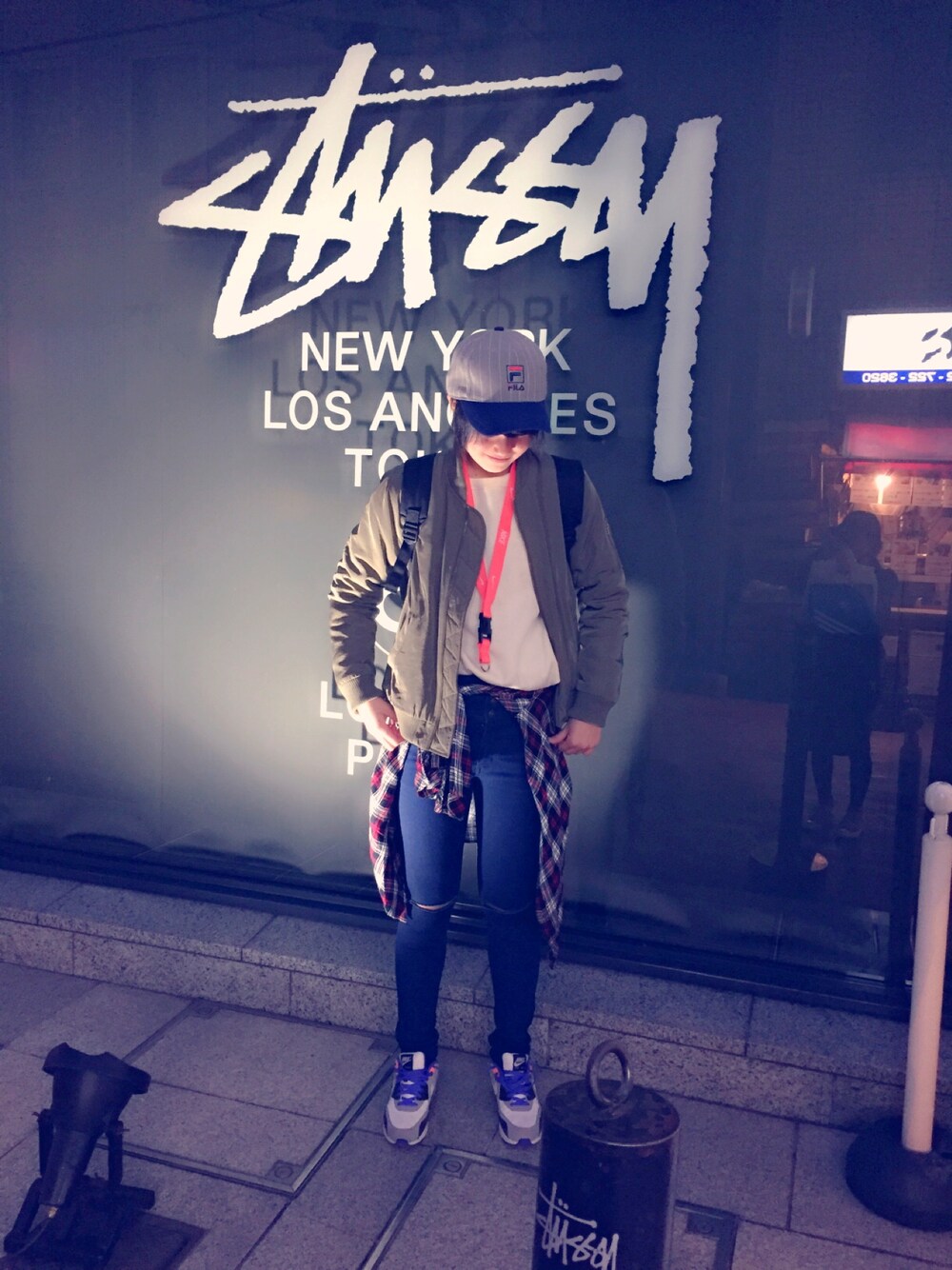 楽しかた🐶 MA-1の中に白の無地トレーナー デニムのハイウエストに赤チェックシャツ NIKEのランヤード、ナイキの靴下はいてAIR MAX!……theスポーツ系ですね スポーツバカなもんで笑