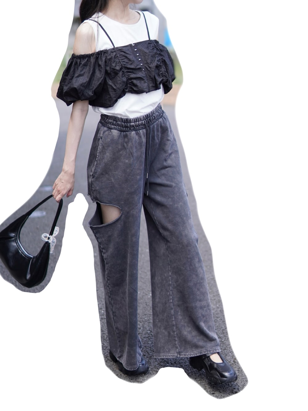 三葉のスウェットパンツ「サイドスリットピグメントスウェットパンツ」を使ったコーディネート