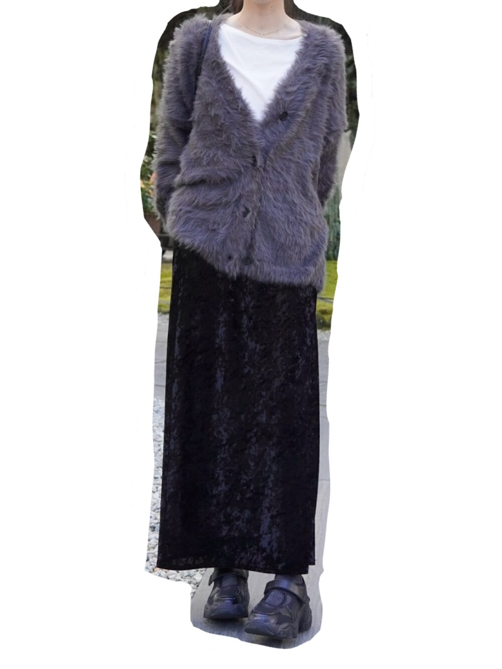三葉のカーディガン/ボレロ「【WEB限定】ウォッシャブルシャギーVネックニットカーディガン」を使ったコーディネート