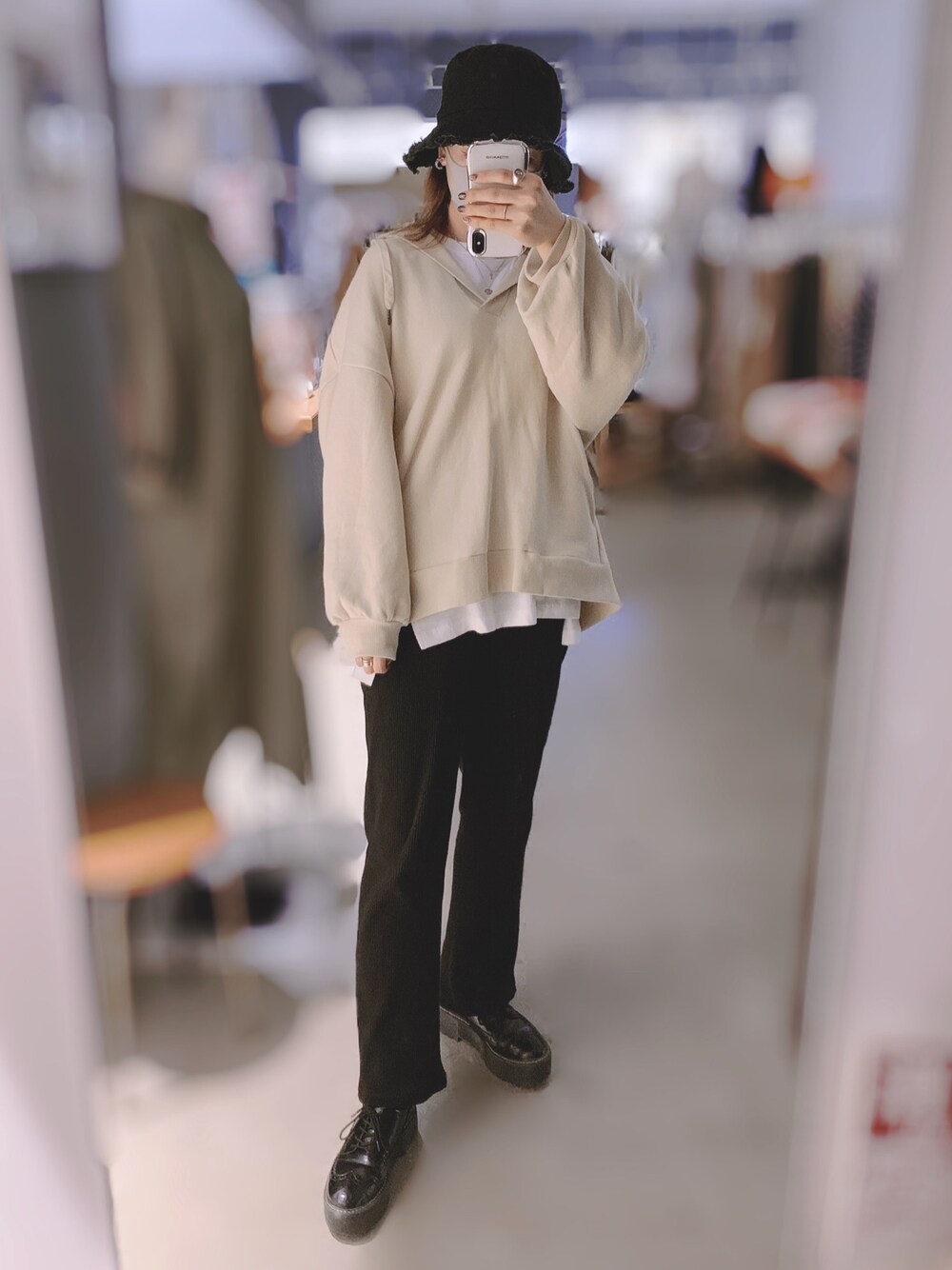 中にTシャツ着てチラ見せが可愛い♡♡ スキッパーになってるから、 デコルテ見せて着ると女性っぽいスタイルになる✌︎︎