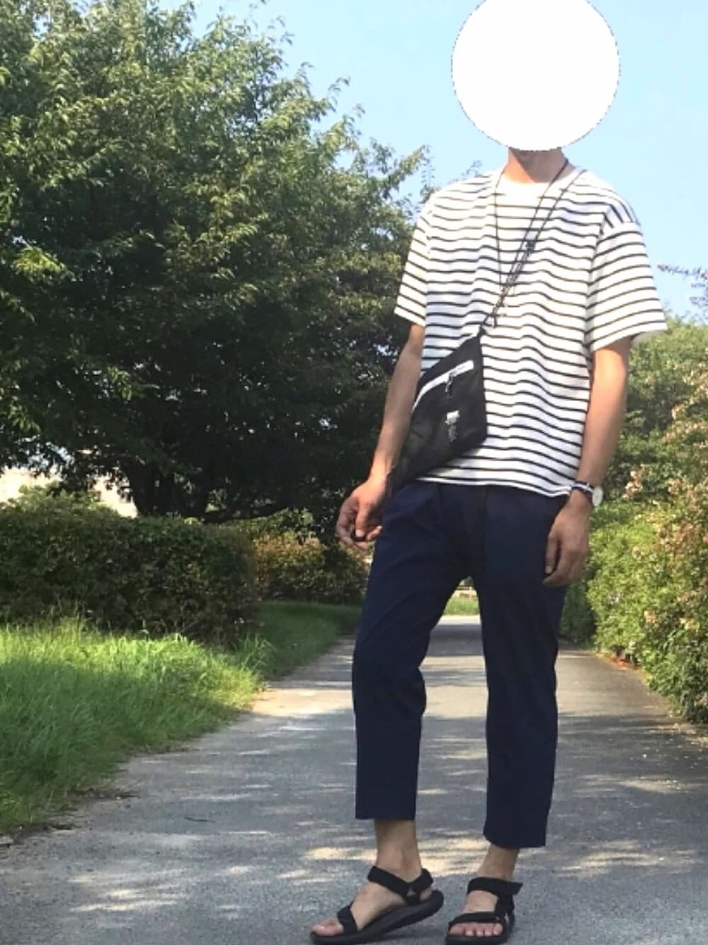 グローバルワークのボーダーカットソー気に入ってまたコーデしました! 白黒のボーダーなのでブルーのパンツと合わせました✨