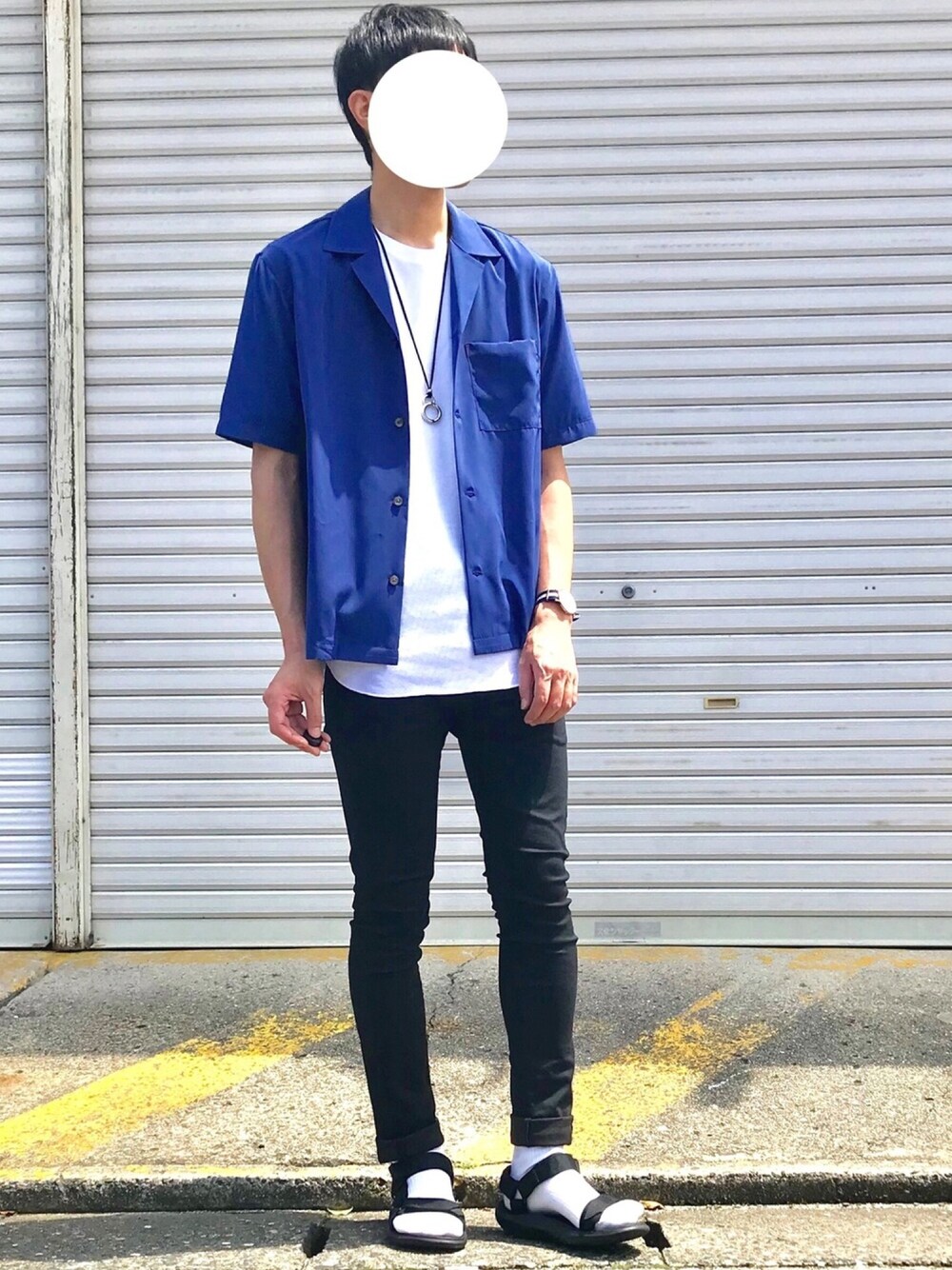 観覧していただきありがとうござます😊 今年初のオープンカラーシャツです✨ 最近、ブルーの洋服をよく買います😂スキニーと合わせましたがワイドパンツとかも合わせていいかもです!