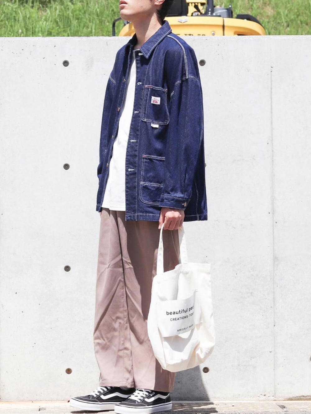 カバーオール着てみました✨ 秋らしい感じにしたかったのでパンツはベージュにしました🙆♂️