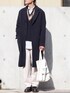 よじ【頑張らない40代コーデ】のチェスターコート「SMOOTH HERRINGBONE MAXI OVER COAT」を使ったコーディネート