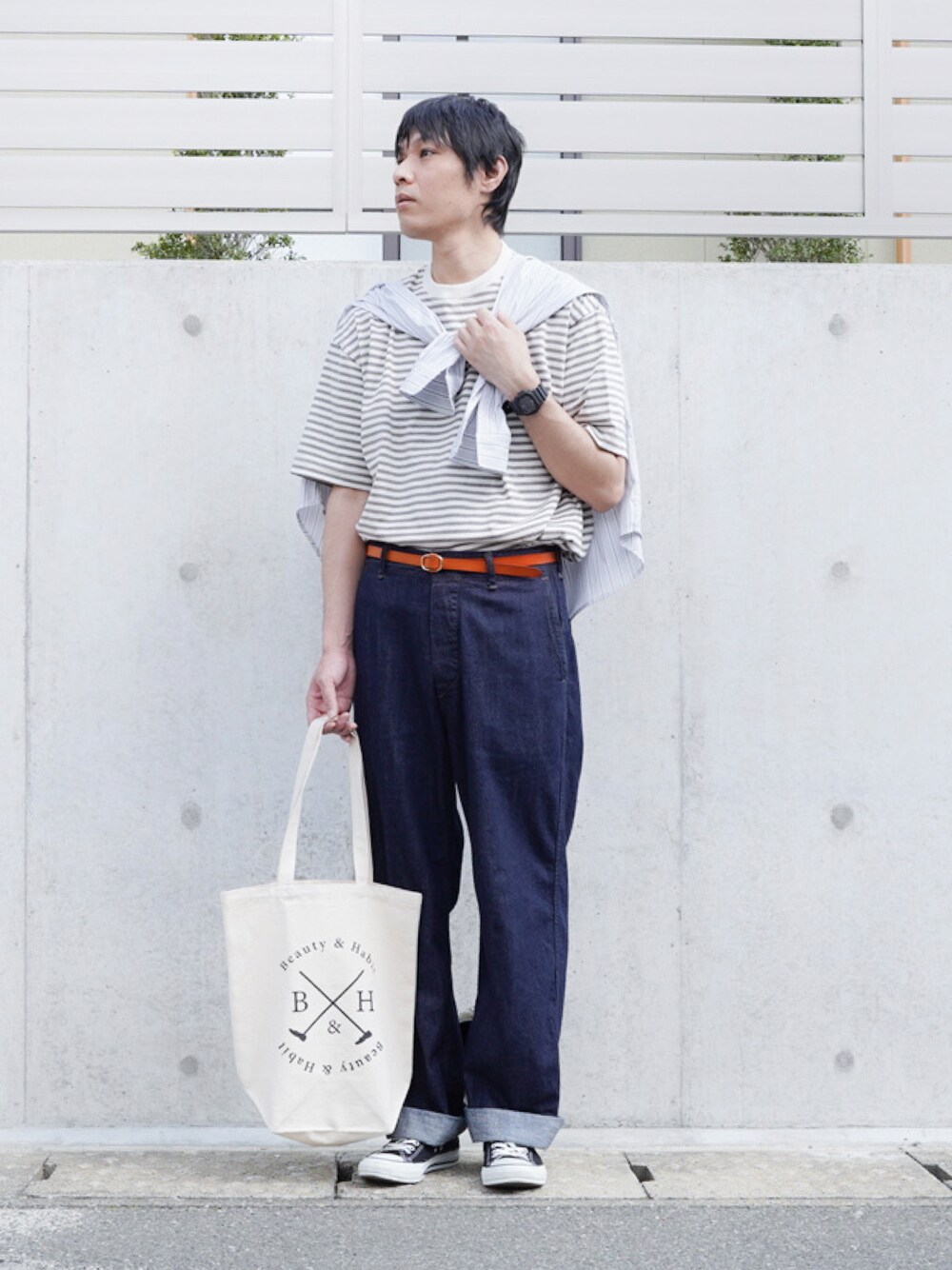 よじ【頑張らない40代コーデ】のTシャツ/カットソー「<Steven Alan> HI-DENS BORDER CREW NECK SHORT SLEEVE TEE-BOLD/Tシャツ」を使ったコーディネート