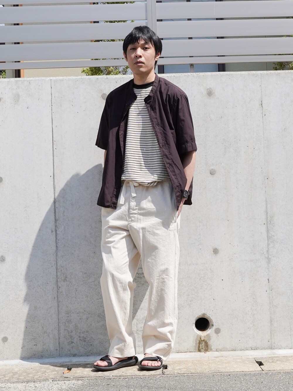 よじ【頑張らない40代コーデ】のシャツ/ブラウス「『別注』MHL.×URBAN RESEARCH GARMENT DYE POPLIN」を使ったコーディネート