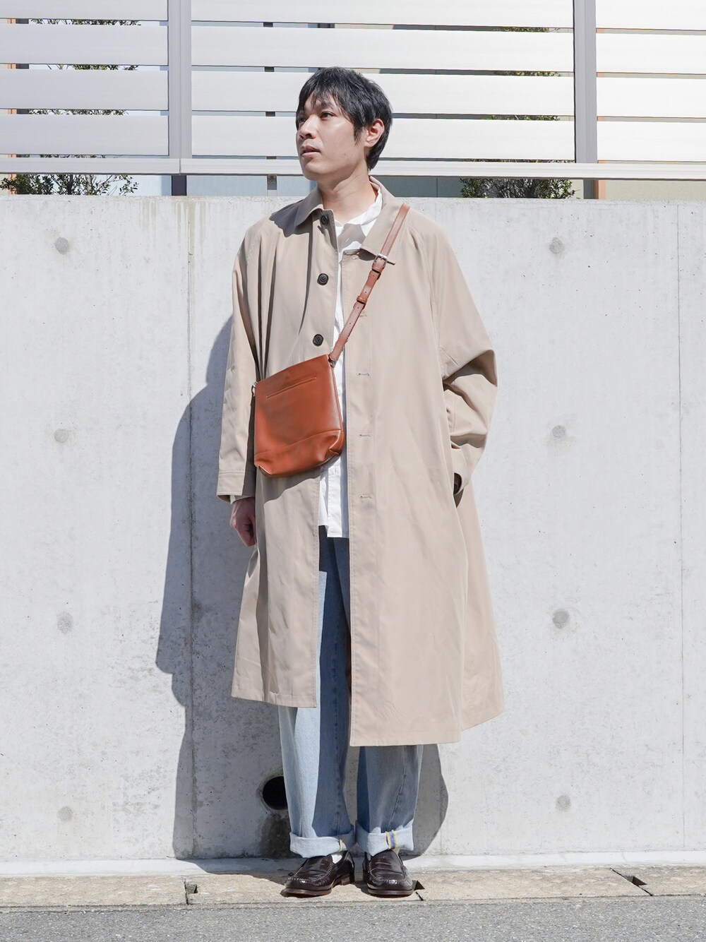 ご覧いただきありがとうございます✨ ステンカラーコートコーデです😃 シンプルにシャツとデニムを合わせました。 ロールアップをしてローファーを綺麗に見せるのもポイントです😎