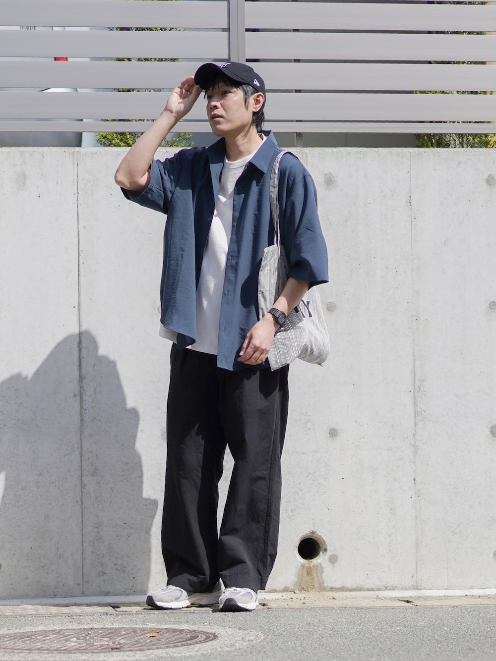 よじ【頑張らない40代コーデ】のシャツ/ブラウス「loose synthetic linen over shirt / ルーズシンセティックリネンオーバーシャツ《夏に涼しい麻調合繊》」を使ったコーディネート