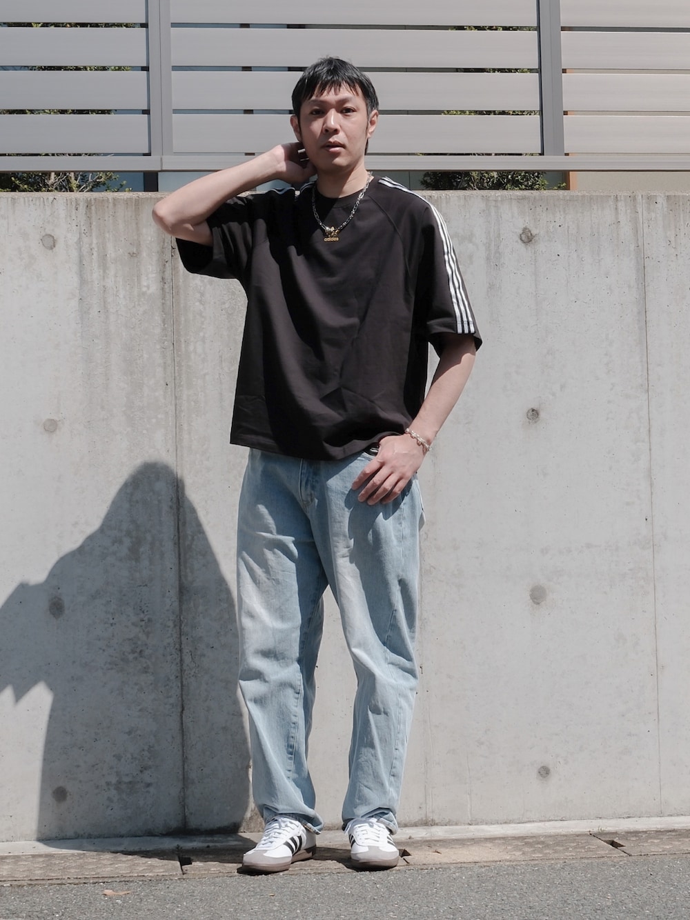 40代お洒落コーデ🧔‍♂️ adidasのカットソーとデニムを合わせてコーデを組みました🙆‍♂️ オジサンでもシンプルでお洒落に見えます😎 アクセサリーも忘れずに💍