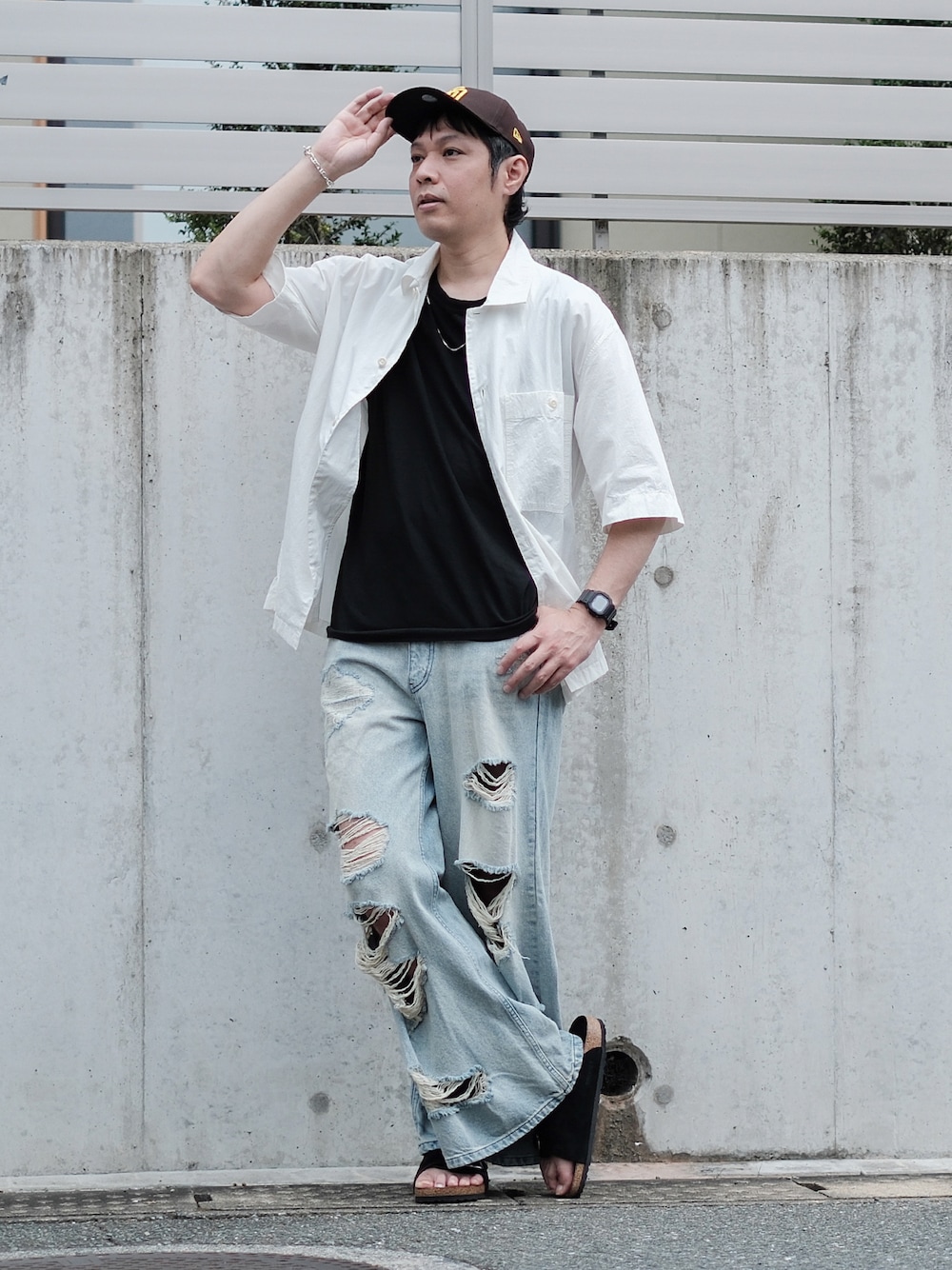 よじ【頑張らない40代コーデ】のデニムパンツ「ワイドダメージデニムパンツ(HARE)」を使ったコーディネート
