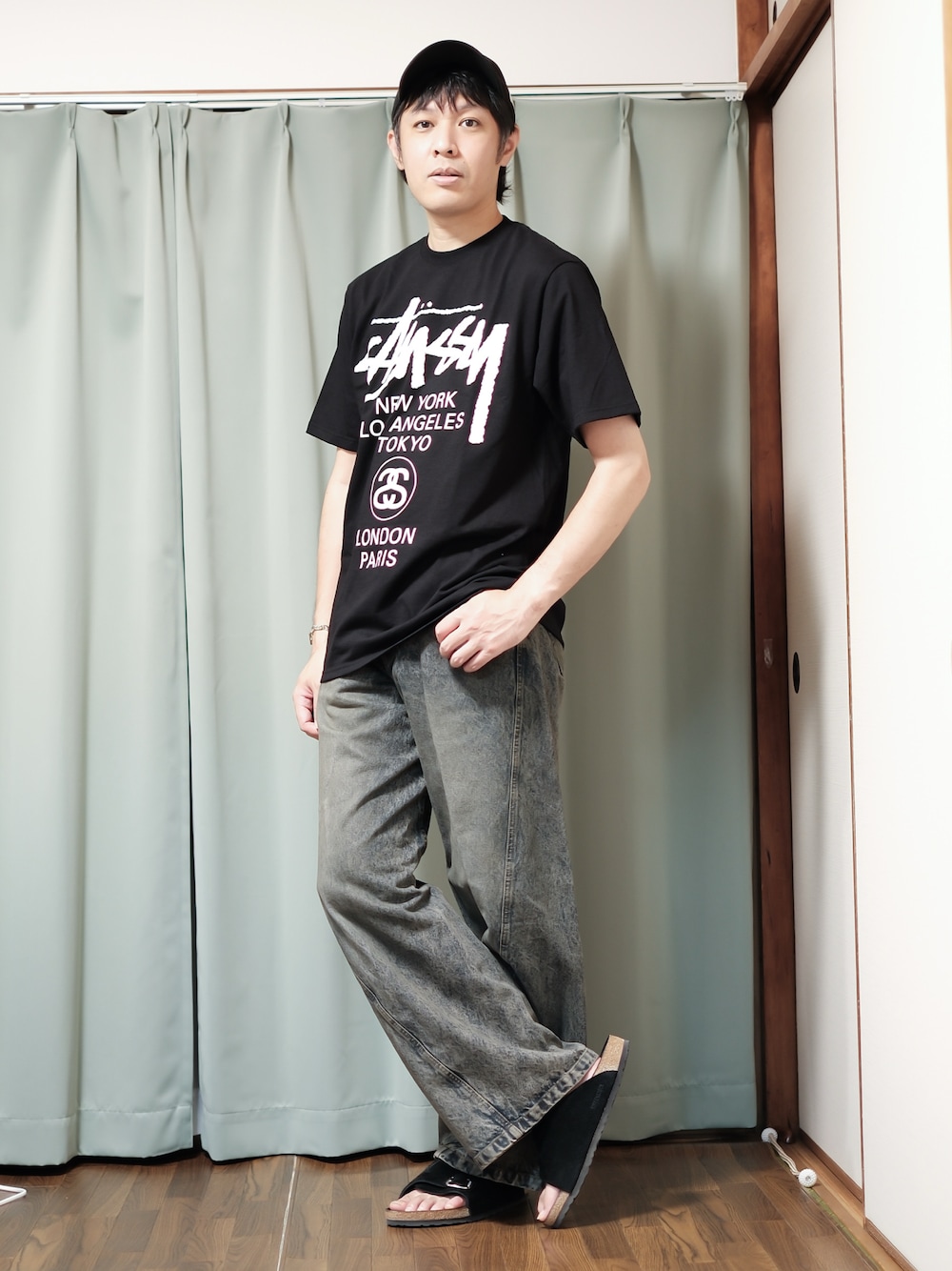 40代お洒落コーデ🧔♂️ 自分が高校生の時に流行っていたステューシーのシャツを着てみました😏 今も流行ってるみたいで嬉しかったです☺️ サイズはMですけど意外と丈が長めでした😳