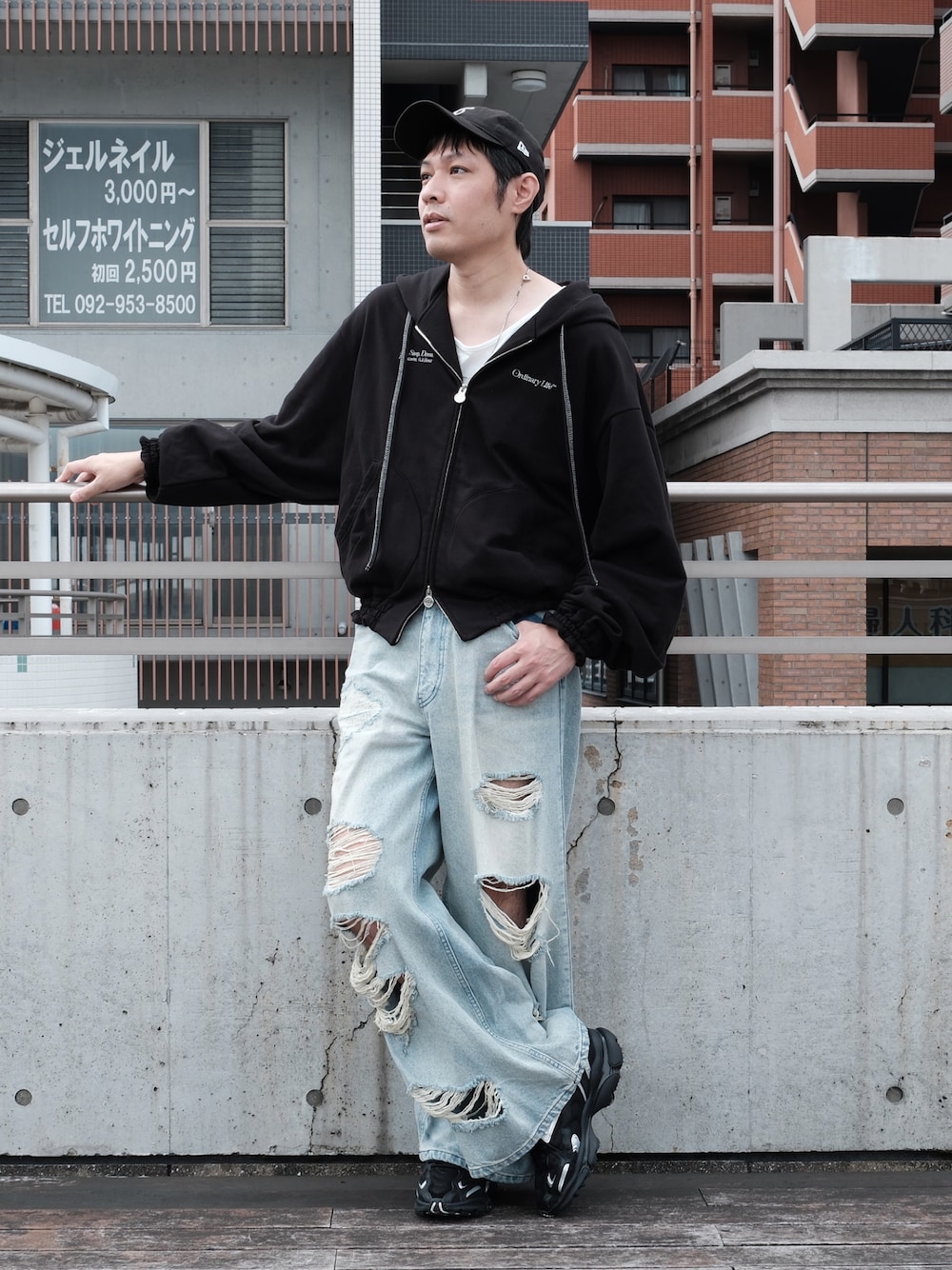 40代お洒落コーデ🧔♂️ この暑い時期にパーカーを着ました🥲 涼しくなれば大活躍間違いなしのパーカーです🍂 シルエットも短丈なのでワイドデニムと合わせるとシルエットも綺麗です😎
