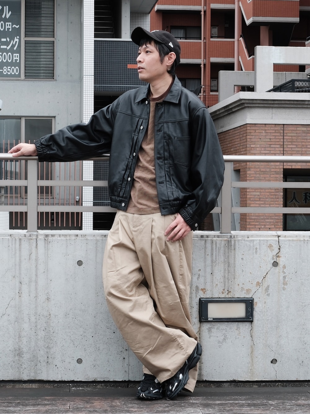 40代お洒落コーデ🧔‍♂️ 今日はブラウンコーデです🍂 秋はブラウンを着たくなります🫡トレンドのレザージャケットを合わせてみました✨ さすがにまだ暑いですね🫠