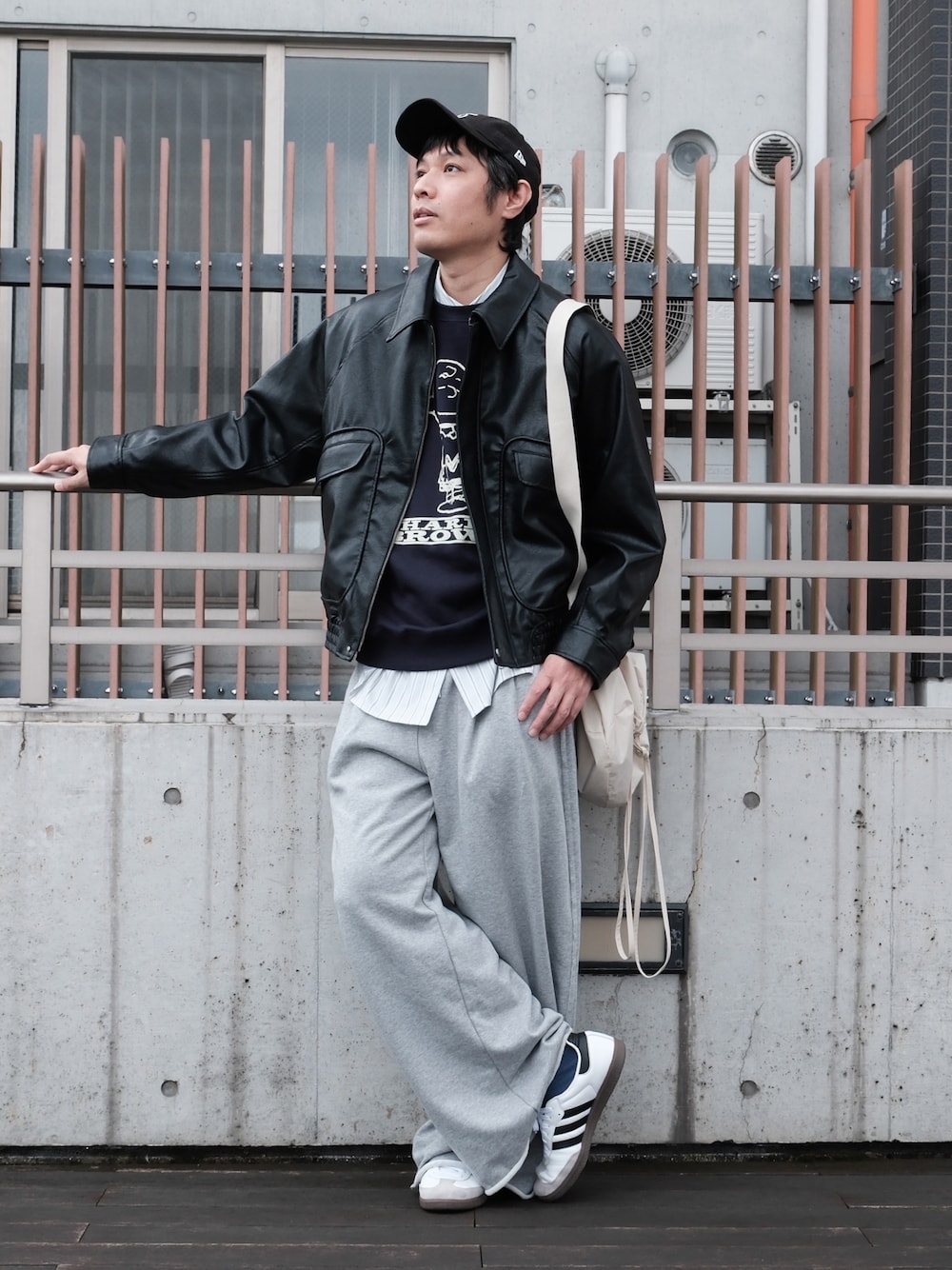 40代お洒落コーデ🧔♂️ ピーナッツコラボのスウェットにレザージャケットを合わせてみました✨ シャツをレイヤードすることでこなれ感が出てお洒落に見えます😎