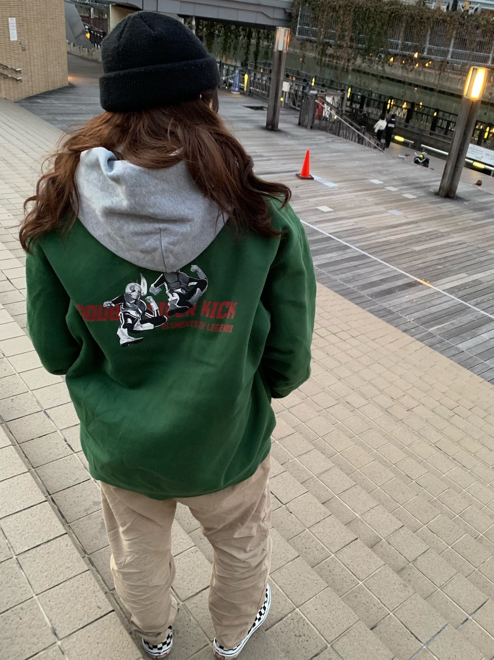 上下GUコーデです❣️ グレーパーカーはLサイズ 緑のスウェットはXLサイズ コーデュロイシェフパンツはSサイズです🖤