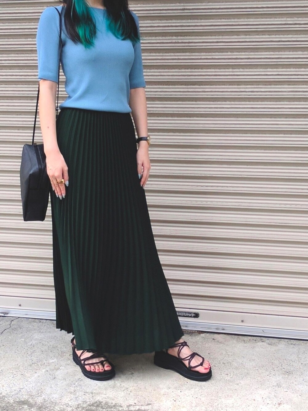 RuRuのニット/セーター「5分袖サマーリブニットトップス」を使ったコーディネート