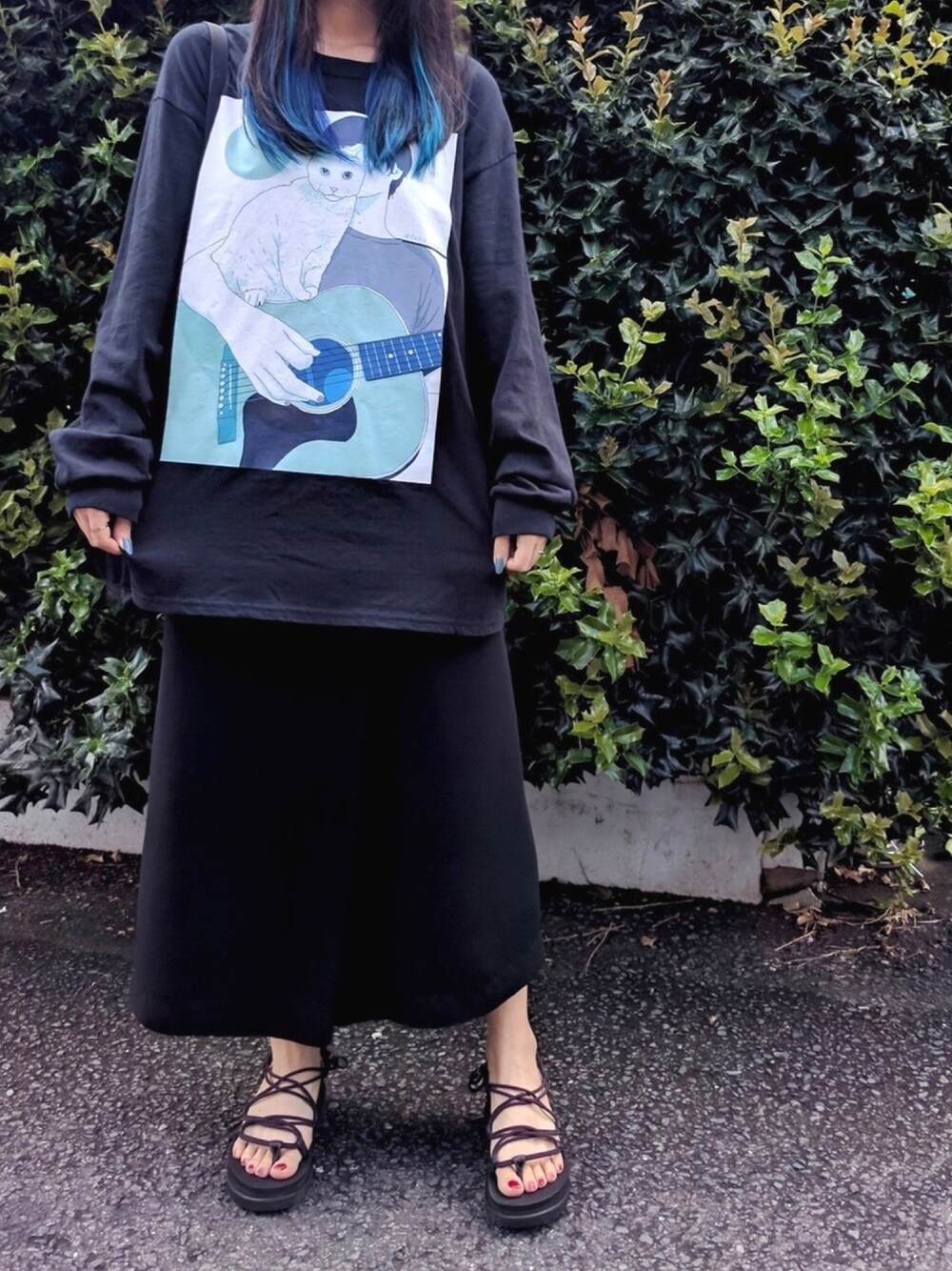 ✽.。.:*・゚ ✽.。.:*・゚ ✽.。.:*・゚ ✽.。.:*・゚ ✽.。.:*・゚ ご覧いただきありがとうございます ゆるっとお散歩コーデです Tシャツは大好きなイラストレーターの フクザワさんのグッズです✧︎*。 ネコとギターロンT 猫好きで音楽好きなわたしには たまらないイラストです! フクザワさんのタッチが好きすぎるんです.......! イラストがブルー系なので 髪色とぴったりじゃないですか?笑 イラストTシャツ好きな方、 フクザワさん好きな方、 いいねやフォローしていってください*.+゚