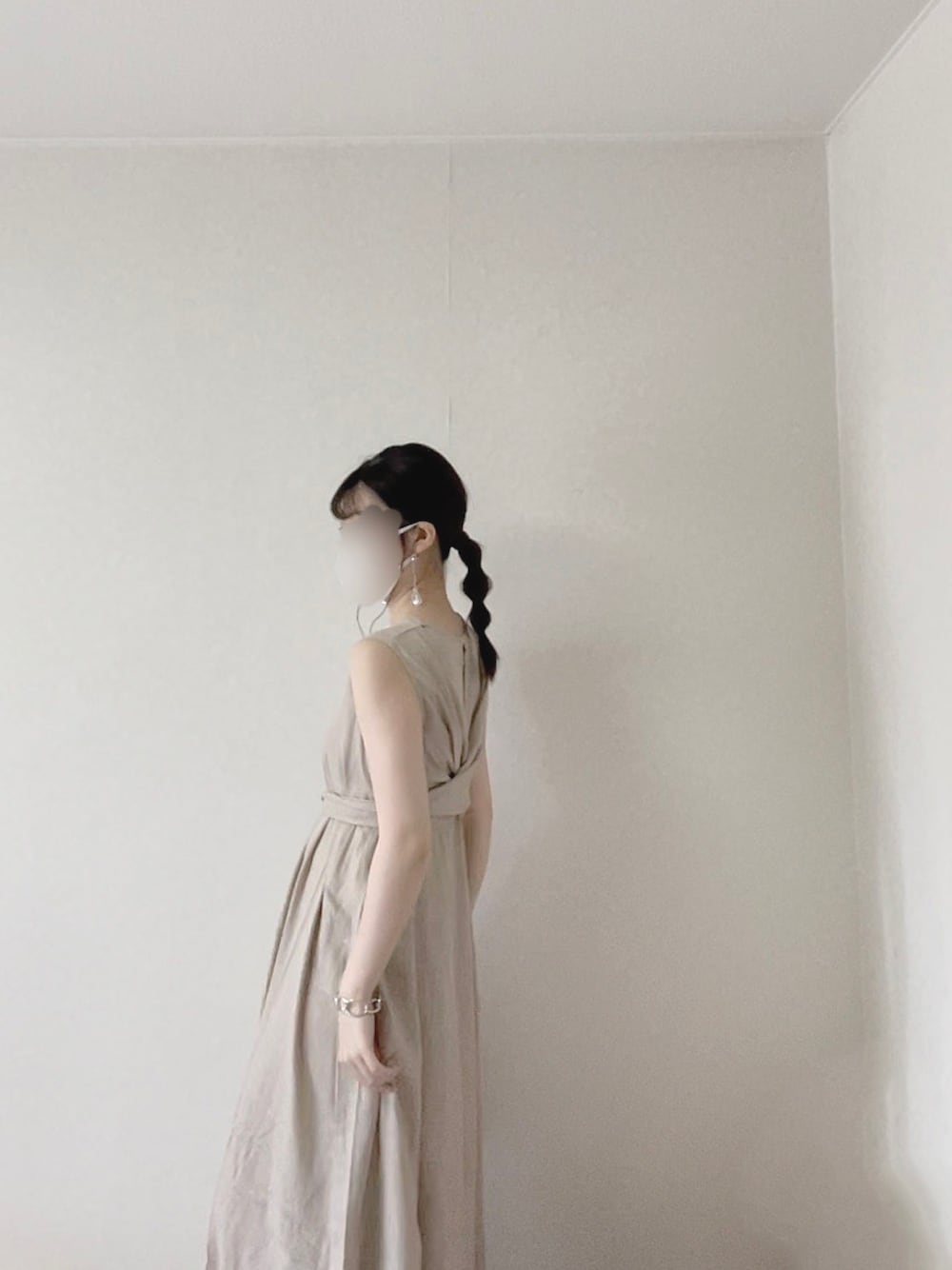Unaのワンピース「リネン混2wayリボンマキシワンピース」を使ったコーディネート