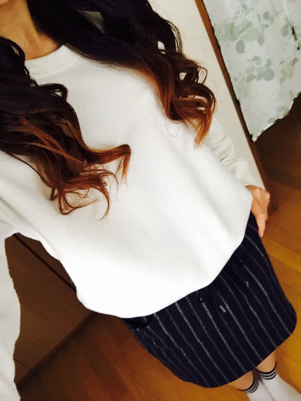 切り返しの付いたワンピースです^ ^ 生地が柔らかくて大好きなワンピース👗 着心地抜群です!!! 久々に髪も巻いてお母さんとお出かけです! もちろんハットも被って(笑)