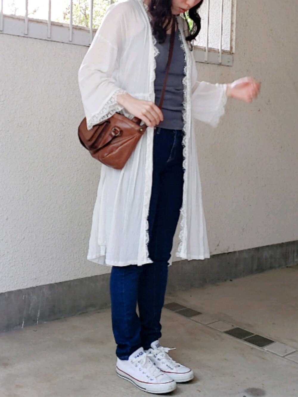 今日はガウン着てみました🎵 ガウンを目立たせるためにデニムとタンクてシンプルにまとめました✌️