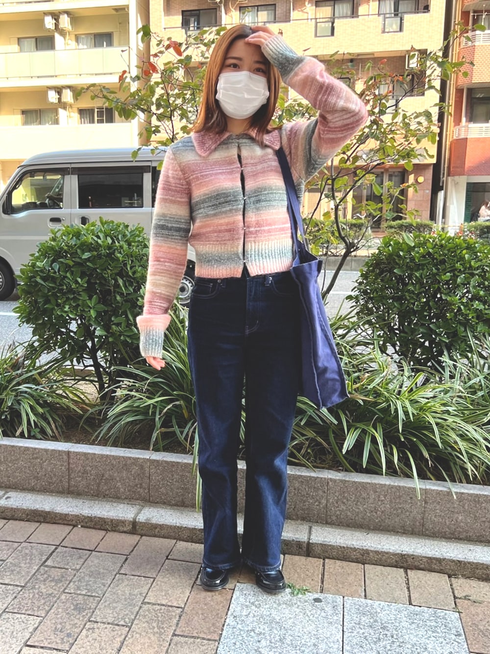 このニット可愛すぎる♡ カーディガンにもなるのでおすすめです 丈短いから、背低いけど足長く見えて良いよ👍 マスクのせいで顔デカく見えるけどほんまはもうちょい小さいから!!!!😭😭😭😭
