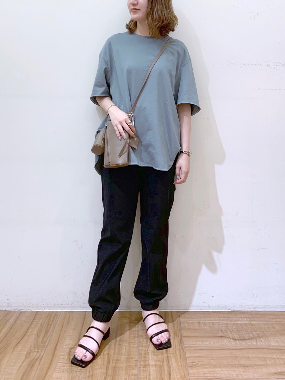 神山まりあさんコラボのカットソーに リラクシーなジョガーパンツを 合わせてシンプルな休日スタイルに。
