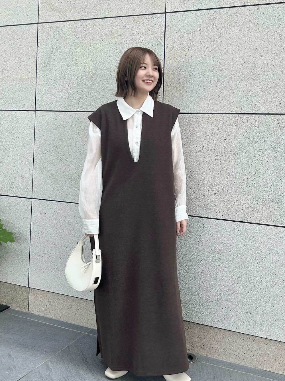 【selectmoca by son】 キーネックワンピとシャツ合わせで知的な雰囲気に♪