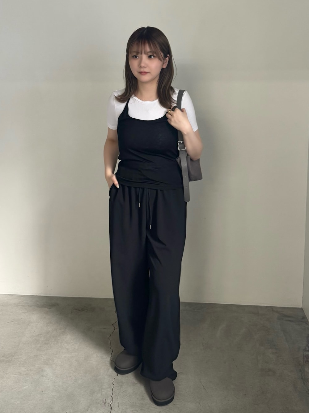 レイヤードアイテムのキャミソールを使ったコーデ♪ 夏場は半袖やタンクトップ合わせで秋口にはロンTとレイヤードできるから様々なコーデを楽しめちゃいます◎