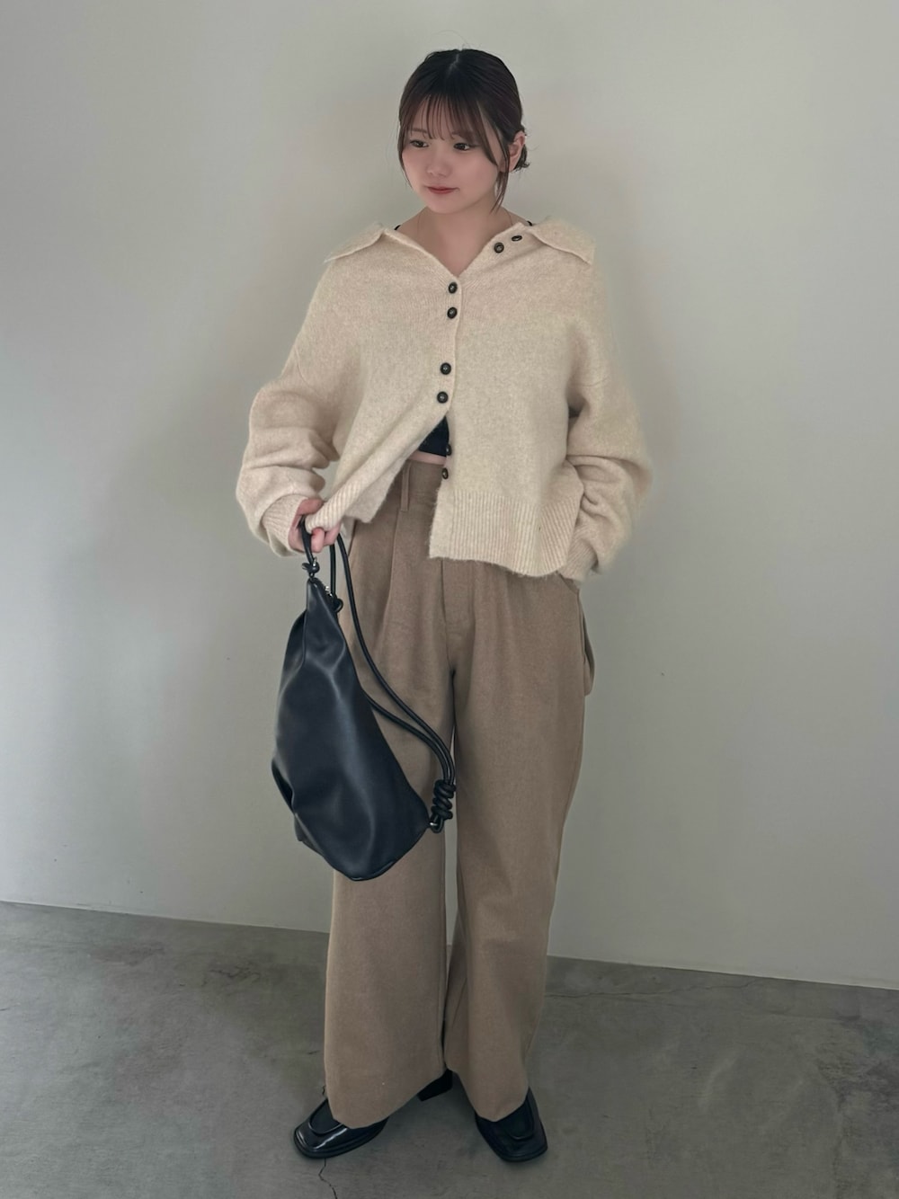 人気のボタンアップポロカーディガンはボタンを多めに開けるのが好き🤍✨ 淡色コーデにしてみました◎