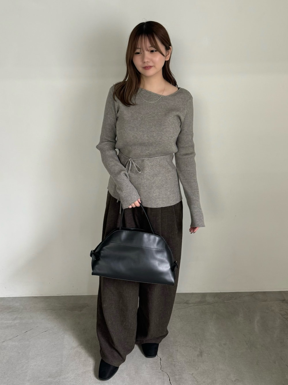ruri(MOCA office)のニット/セーター「アシメネックウエストリボンニット」を使ったコーディネート
