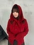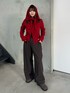 レッド×ブラウンはもうバレンタインコーデにぴったり💌 カーディガンはスカーフもついてるの嬉しい❣️