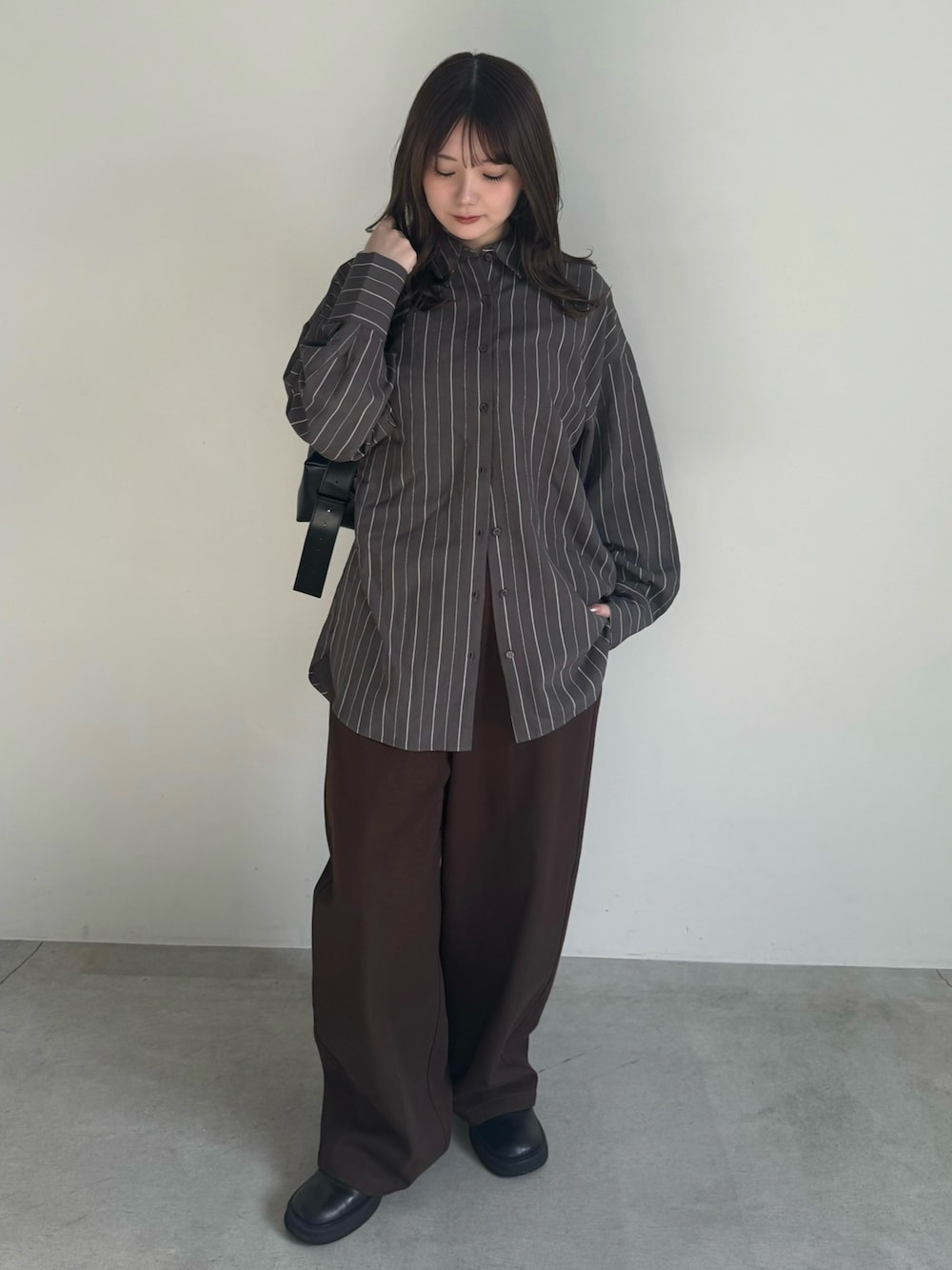 ダブルラインがおしゃれなストライプシャツ🤎 ブラウンで落ち着いたトーンにしてみました◎