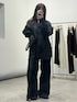 大人気すぎるこちらのセットアップ👀 上品な刺繍がオールブラックでも重たくなりすぎなくて良き◎ 質問の多かったパンツのサイズ感は、 ウエストひと曲げして3cmほどのヒールを履けば床につかない感じです!✨