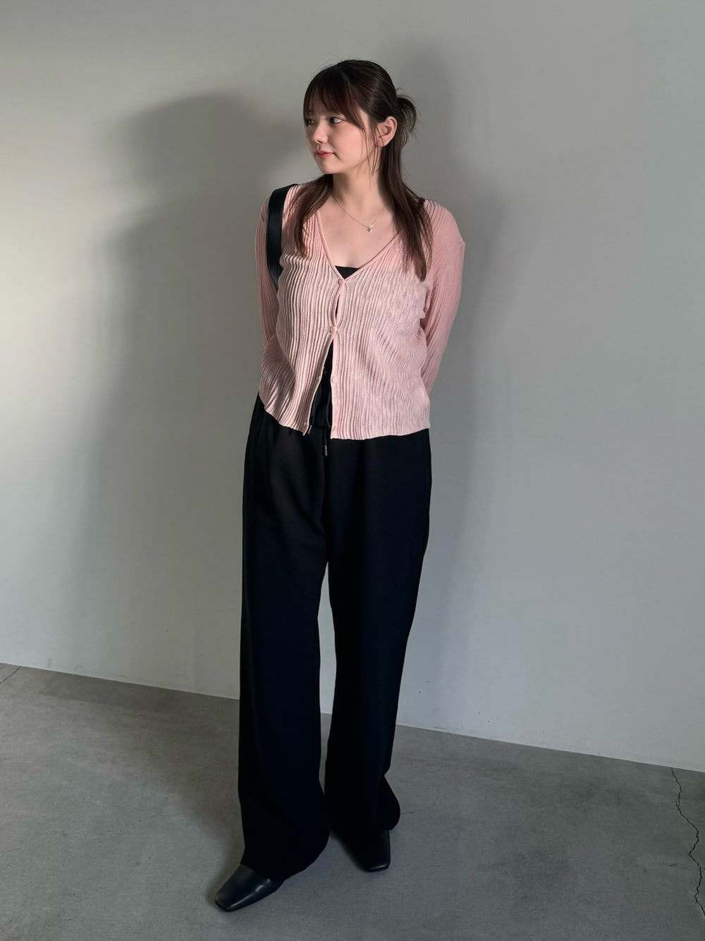 短丈トップスとリラックスパンツはスタイリアップ効果抜群!✨ シアーリブトップスのピンクも肌馴染み良くて挑戦しやすいカラーでよき🌸 ピンクトップス着てお花見行きたいな〜!