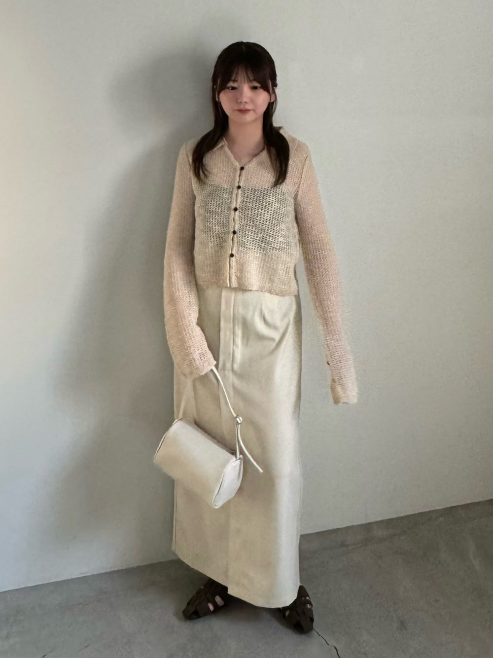 ruri(MOCA office)のカーディガン/ボレロ「ボタンデザイン透かし編みショートカーディガン」を使ったコーディネート