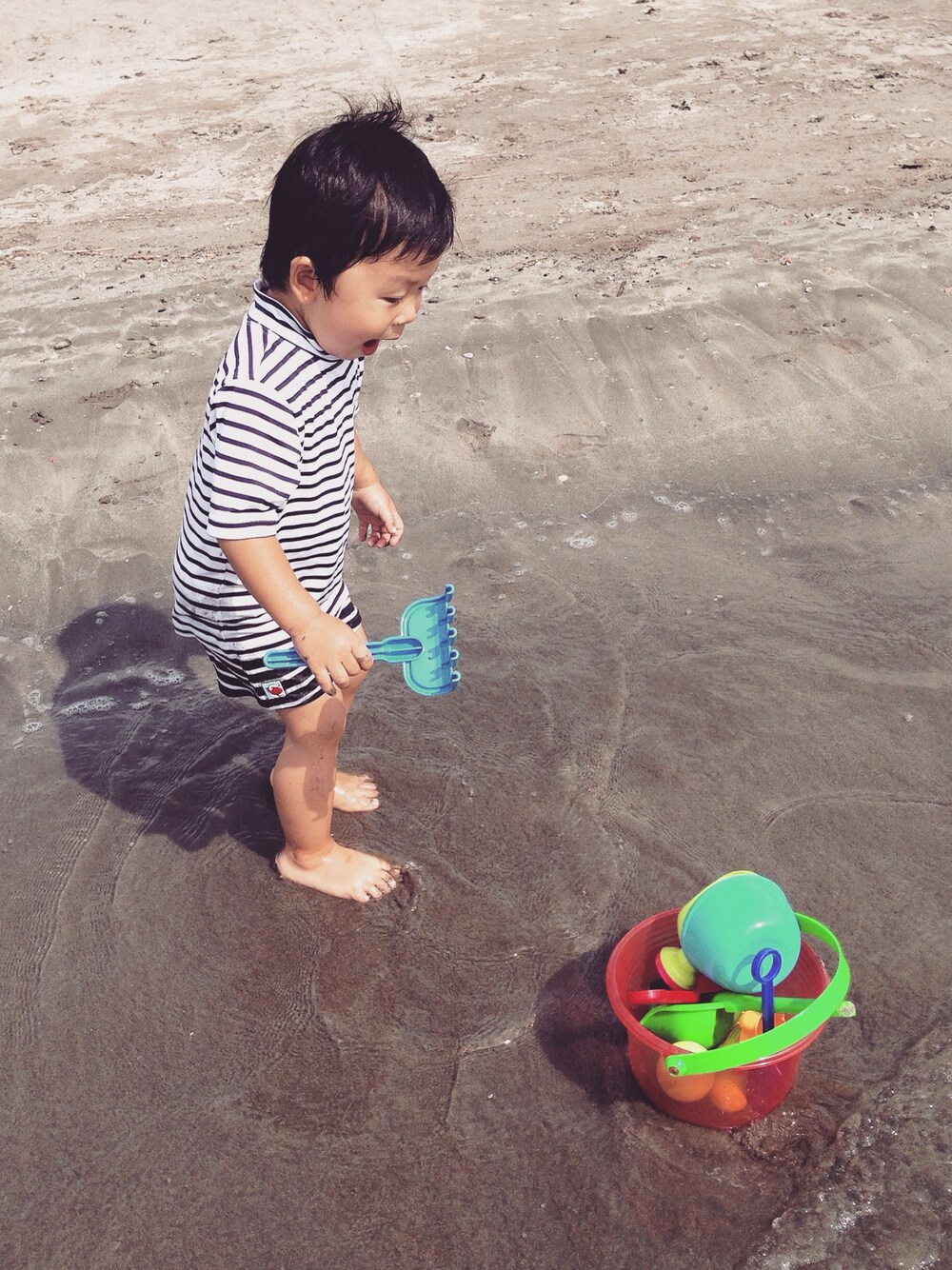 オーストラリアのlittle red fishのラッシュガードとスイムパンツです。お揃いで私も着ています。