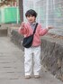 春っぽコーデ🌸 リアルは 暖かい日から一転して 冬コーデしてます😂 後ろにチラッチラしてるのは 兄です👦🏻w 遊び行った帰りに遭遇した👦🏻👶🏻