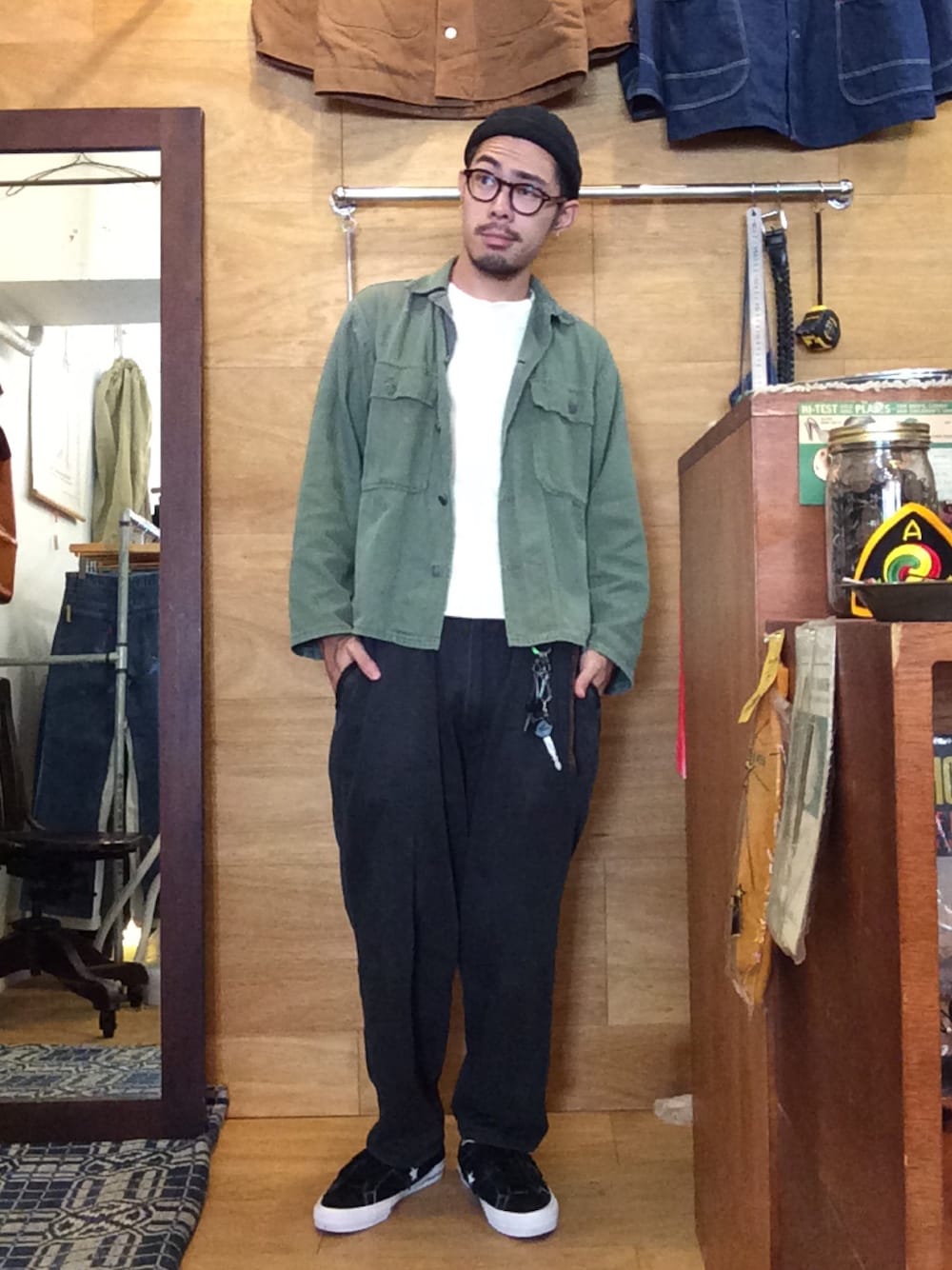 tops:50s HBT shirts pants:70s slacks shoes:converse onester cap: beton cire 仕入れのため海外にいっていたため久しぶりの更新です… もうすっかり涼しくなって洋服を楽しめる時期になってきましたね。 みなさんはどのような格好をされる予定でしょうか? 私はもっぱら古着ですかね…