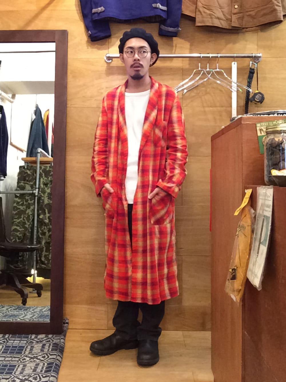 tops:60s long shirts coat inner:long t-shirts pants:levi's 519 1558 shoes:brandstone hat:50s beret たまにはこんな格好も〜