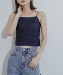 セール中のチュールキャミソールに、再入荷したクロップドシャツを着ました。 ボトムスがカジュアルなのでシャツでバランスを取りました。 スウェットパンツはスソのドロスト部分を少し絞ってたぽっとするシルエットにしました。 アクセサリーをつけてバッグも小さめにして部屋着感を無くします!