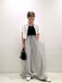 セール中のチュールキャミソールに、再入荷したクロップドシャツを着ました。 ボトムスがカジュアルなのでシャツでバランスを取りました。 スウェットパンツはスソのドロスト部分を少し絞ってたぽっとするシルエットにしました。 アクセサリーをつけてバッグも小さめにして部屋着感を無くします!