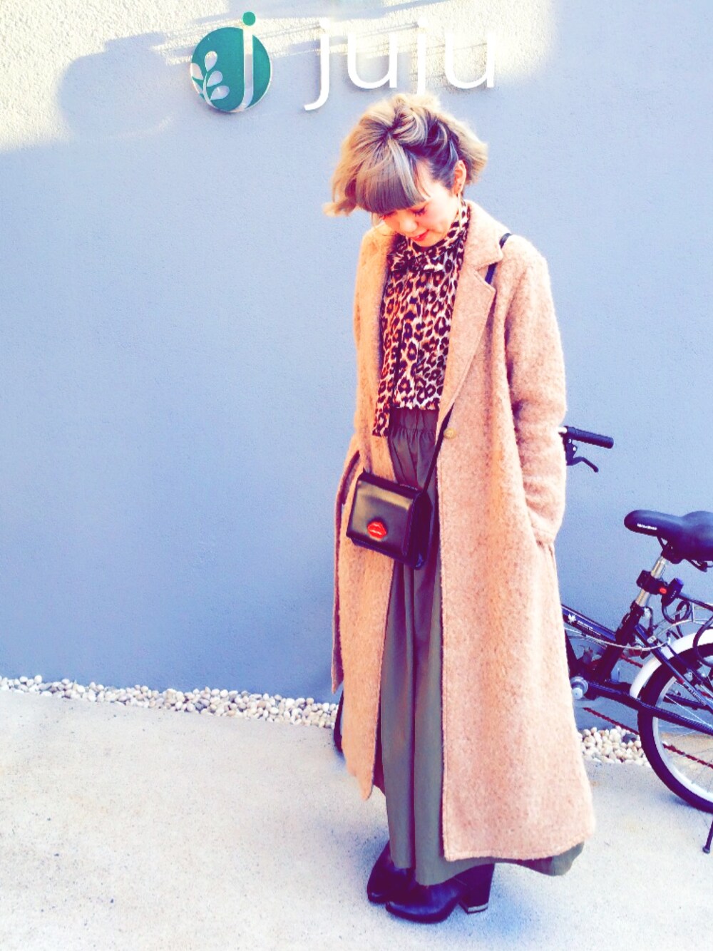 レオパードのボウタイブラウスを着たかったから…🐰 ロングコートお気に入り♡