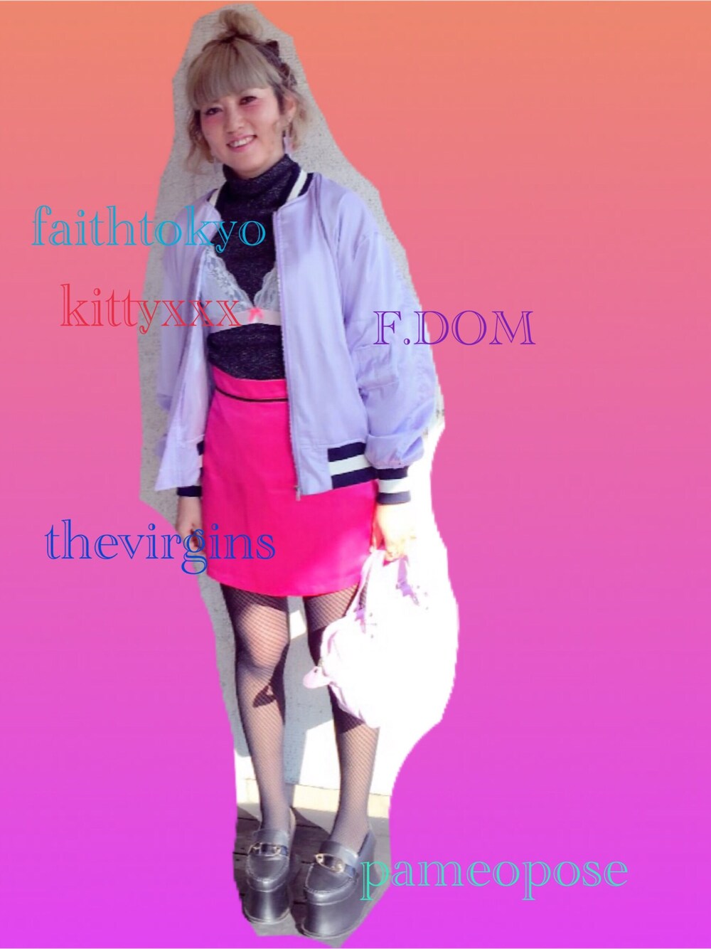春コーデ♡ ランジェリートップスとスカジャンがポイント!