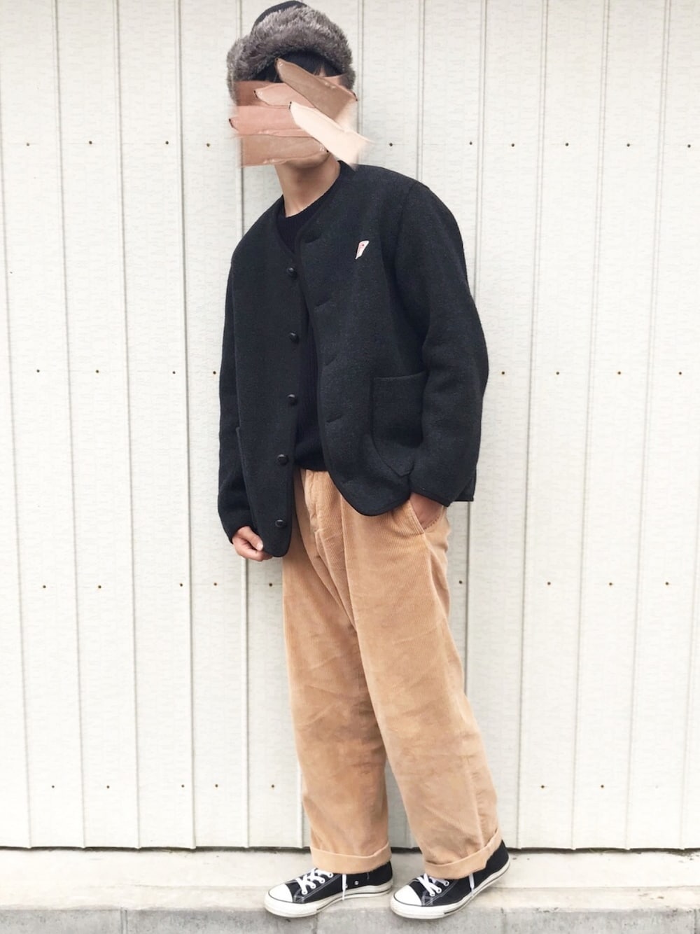Instagram→@shino___ry 2017年最後のコーデです🏃 古着屋で欲しかったワイドめのコーデュロイパンツ見つけれて良かったです🙆♂️