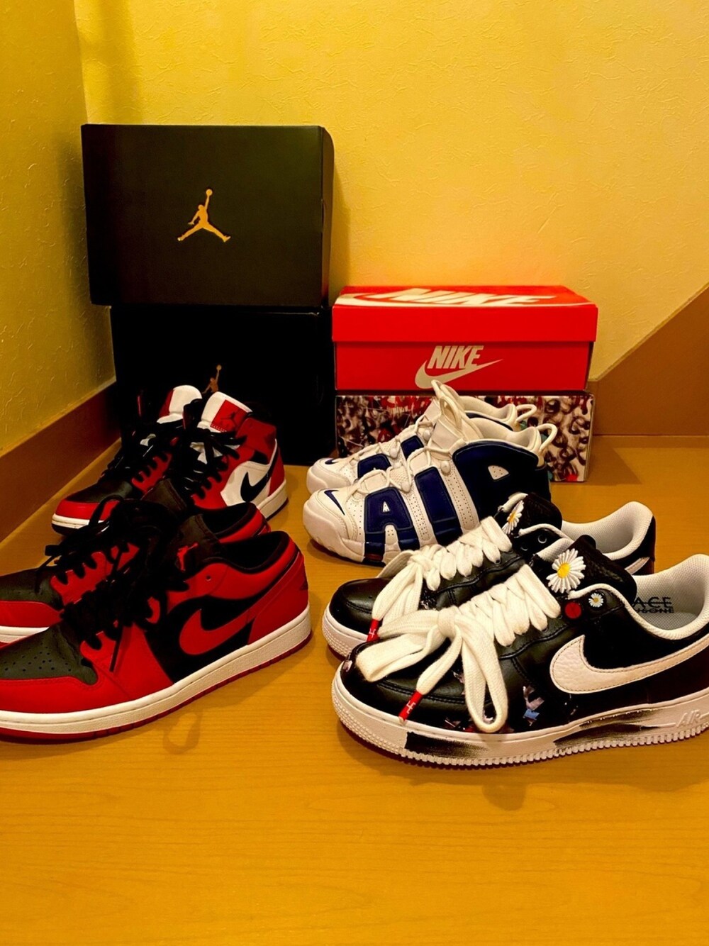 NIKEのスニーカー好き過ぎる✔︎ パラノイズも段々剥げてきていい味出てきましたね🤔🤔 ジョーダン1ローとミッドしか持ってないけど2足ともお気に入りです✌️ モアテンも東京までわざわざ買いに行った思い出の1足で宝物です😭 次のパラノイズも絶対買う!! 早く発売日にならんかな〜
