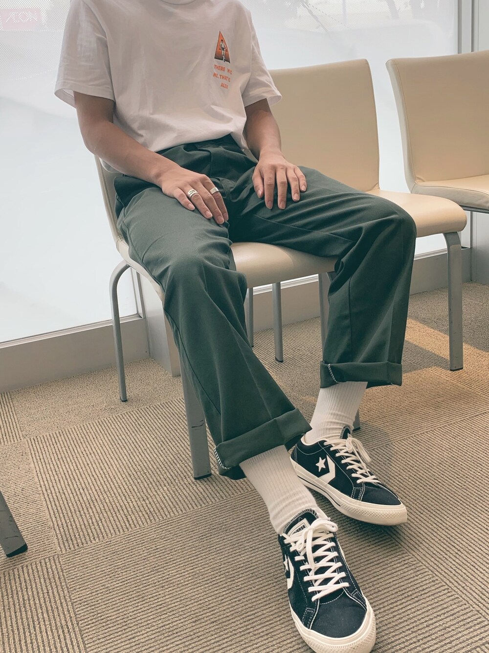 緑が可愛い tee—#gu pants—#dickies shoes—#converse