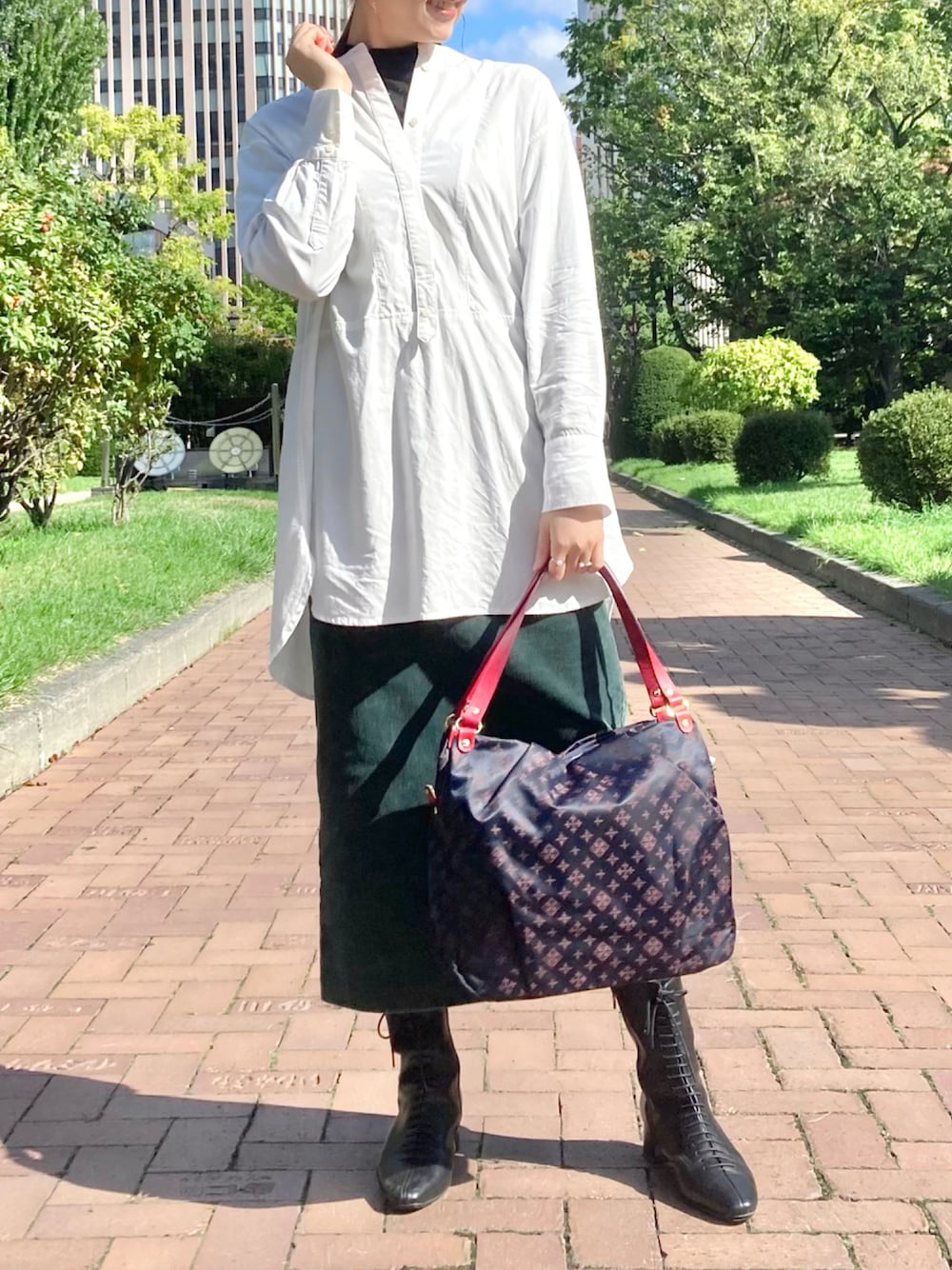 sakamoto(russet)のボストンバッグ「カラーハンドルボストントートバッグ L (CE-849)」を使ったコーディネート