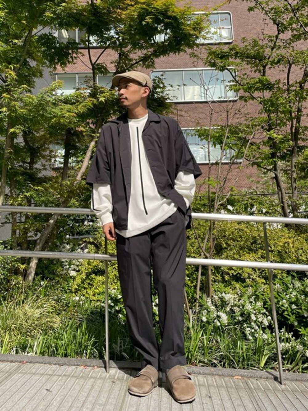名前の通り「着物」をイメージしたシャツ。 袖にしっかりとゆとりがあるので、大きめのロンTeeと合わすのもオススメです。 こちらは2番で着用しておりますが、1番でジャストサイズに着るのも格好良いかと思います!
