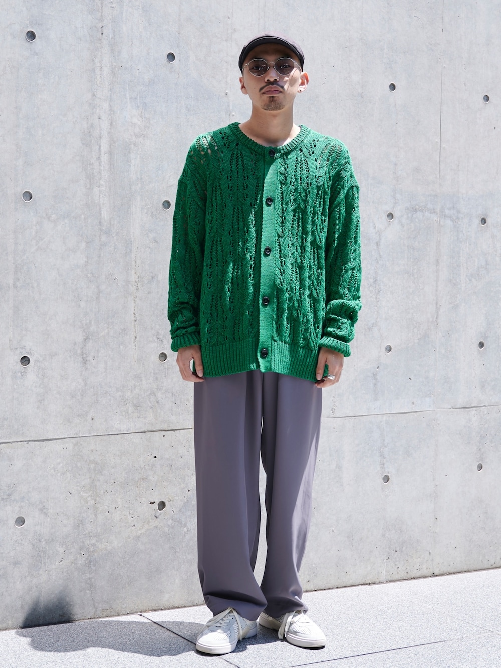 メッシュカーディガン。 インナーが見えすぎないデザインなので男性も着やすいです。 インナー次第で3シーズンお使いいただけます。